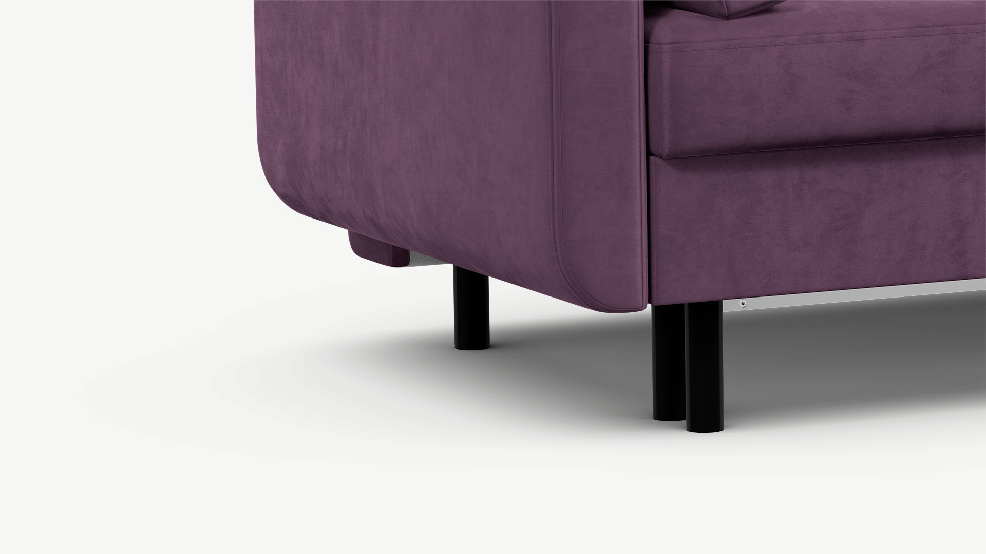 Благодаря высоким конусовидным опорам под диваном проходит робот-пылесос и легко проводится влажная уборка, что обеспечивает чистоту и порядок в доме. Цвет опор подбирается дизайнерами с учетом фактуры и цвета обивочного материала, а также последних модных тенденций.