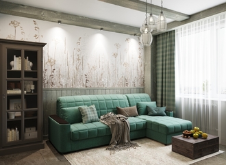 Объемные подлокотники — стильная деталь, отлично вписывающая диван в интерьер современной городской квартиры.