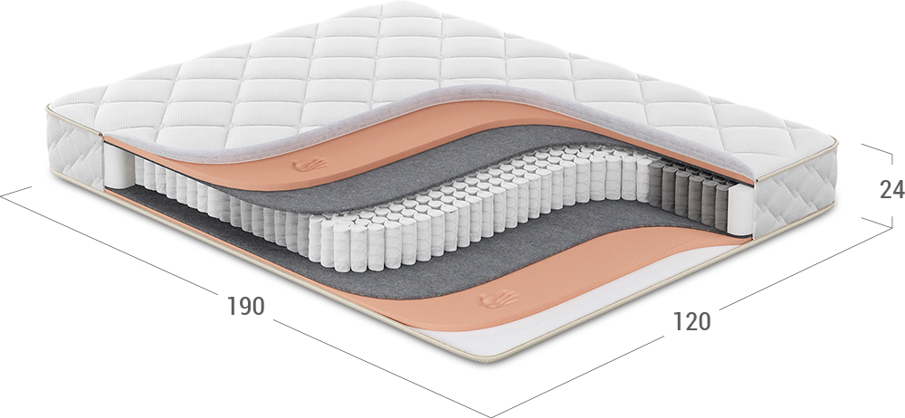 Повышает жесткость и плотность спального места, а также обеспечивает оптимальный воздухообмен благодаря объемной структуре материала. Улучшает эксплуатационные показатели матраса, не давая пружинному блоку механически воздействовать на комфортные слои.