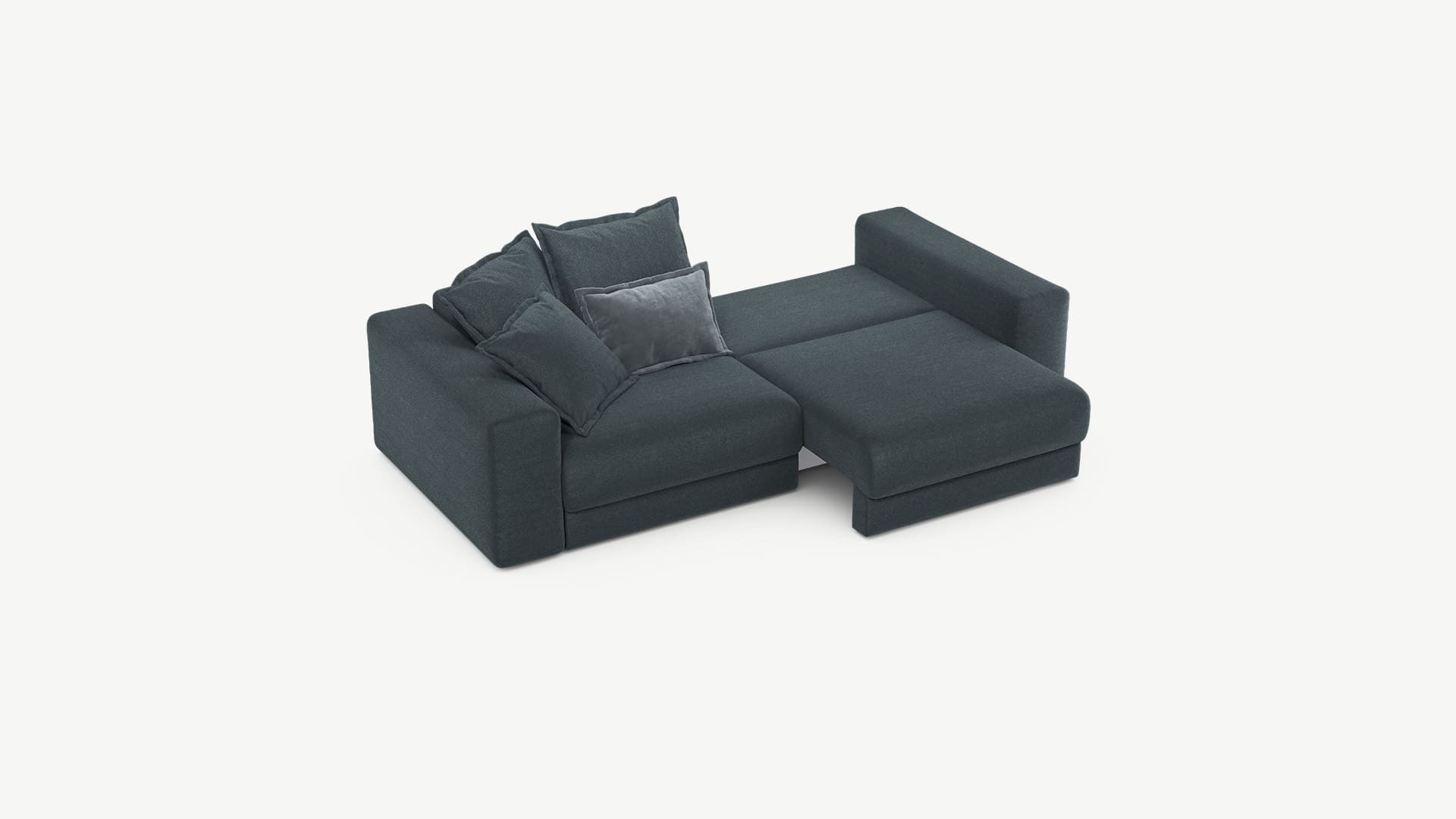 Механизм трансформации «Еврокнижка» подходит для ежедневного использования. Независимая посекционная трансформация кресельных модулей дивана позволяет создавать индивидуальный комфорт для каждого. Вы продолжаете смотреть телевизор, в то время как близкий человек может трансформировать другую секцию и прилечь.