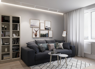 Спинка, выполненная в обивочной ткани, позволяет ставить диван в центре комнаты и зонировать пространство.