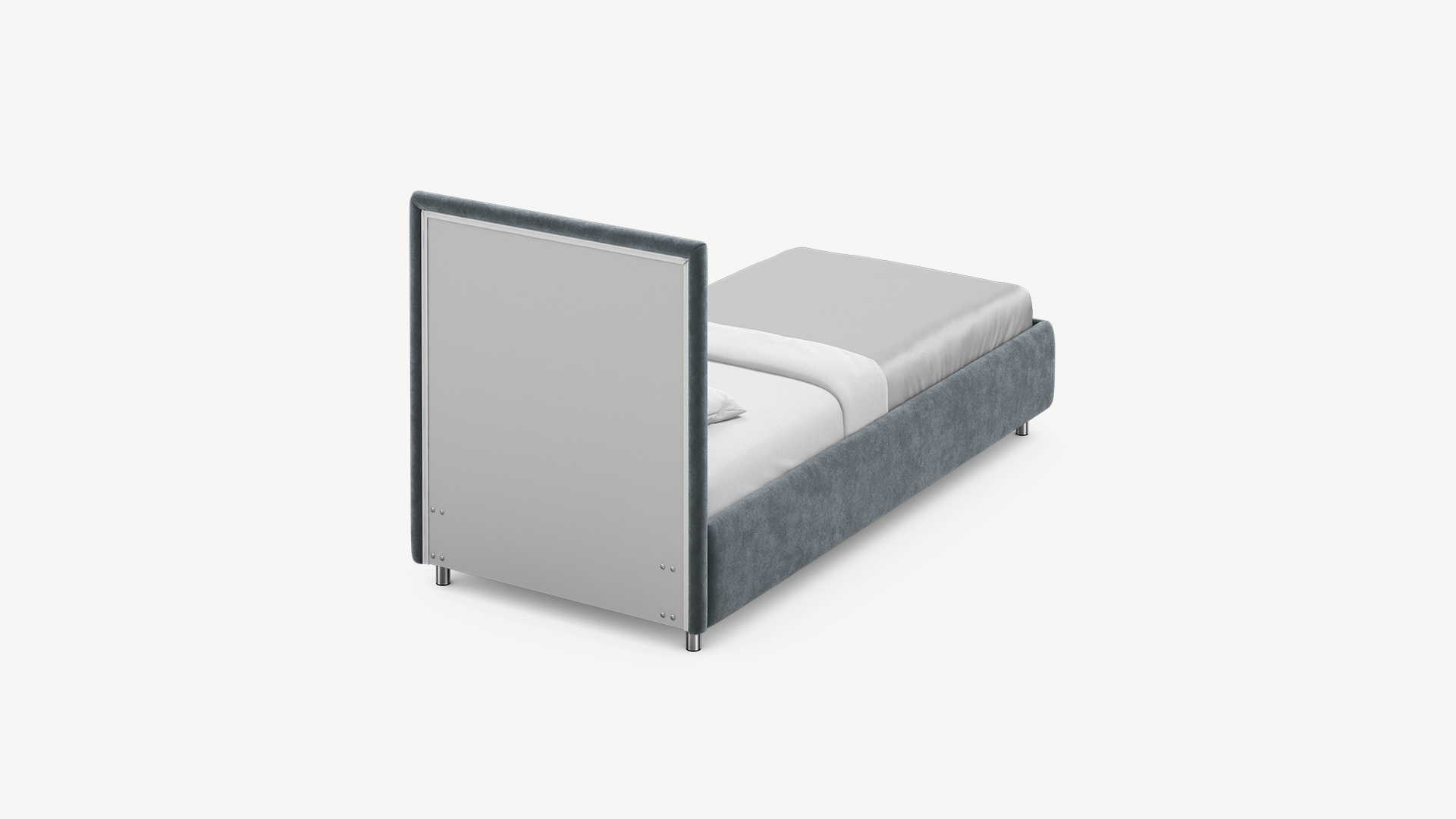 Изголовье кровати MOON 1156 — ключевой элемент ее минималистичного дизайна. Отсутствие декоративных элементов придает кровати элегантную лаконичность, подчеркивая ее современный стиль.