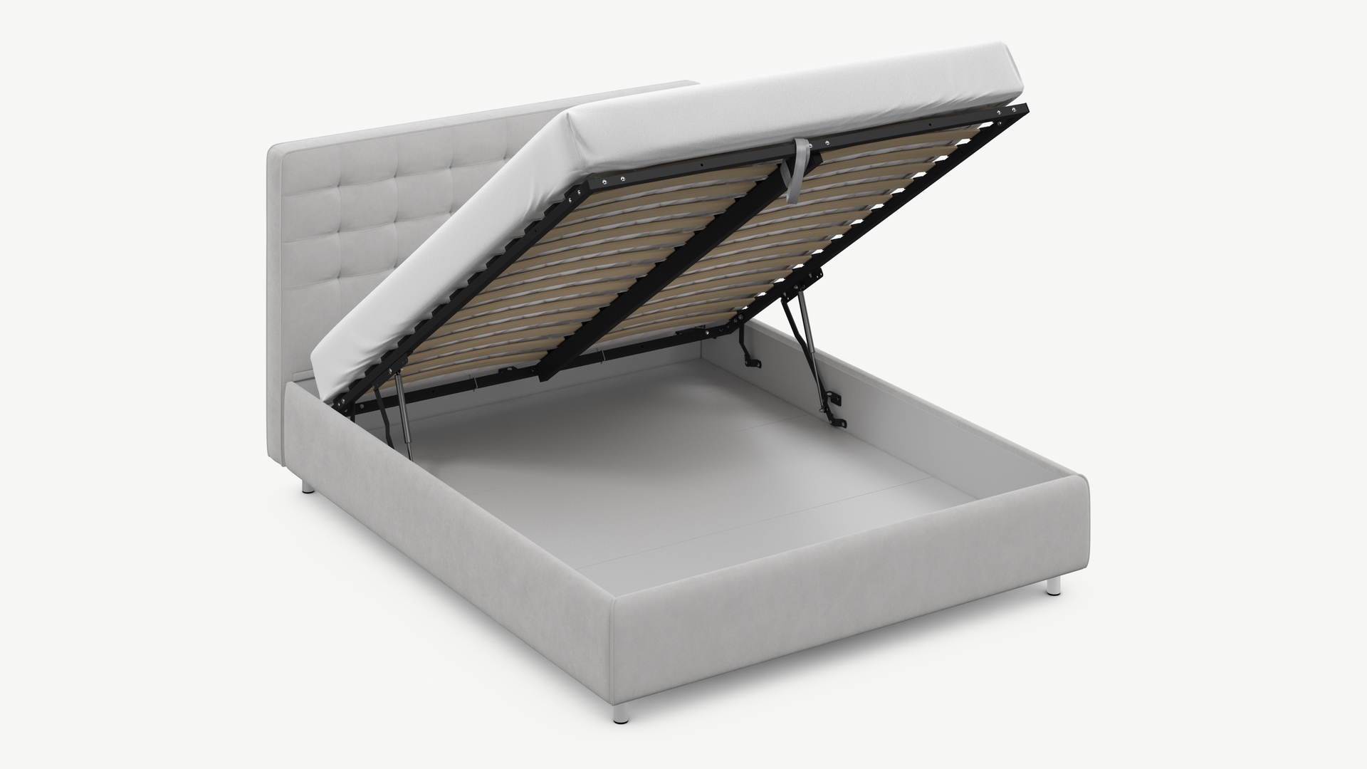 • Скрытая под основанием вместительная емкость без внутренних перегородок позволяет использовать всю площадь подкроватного пространства для хранения вещей.
