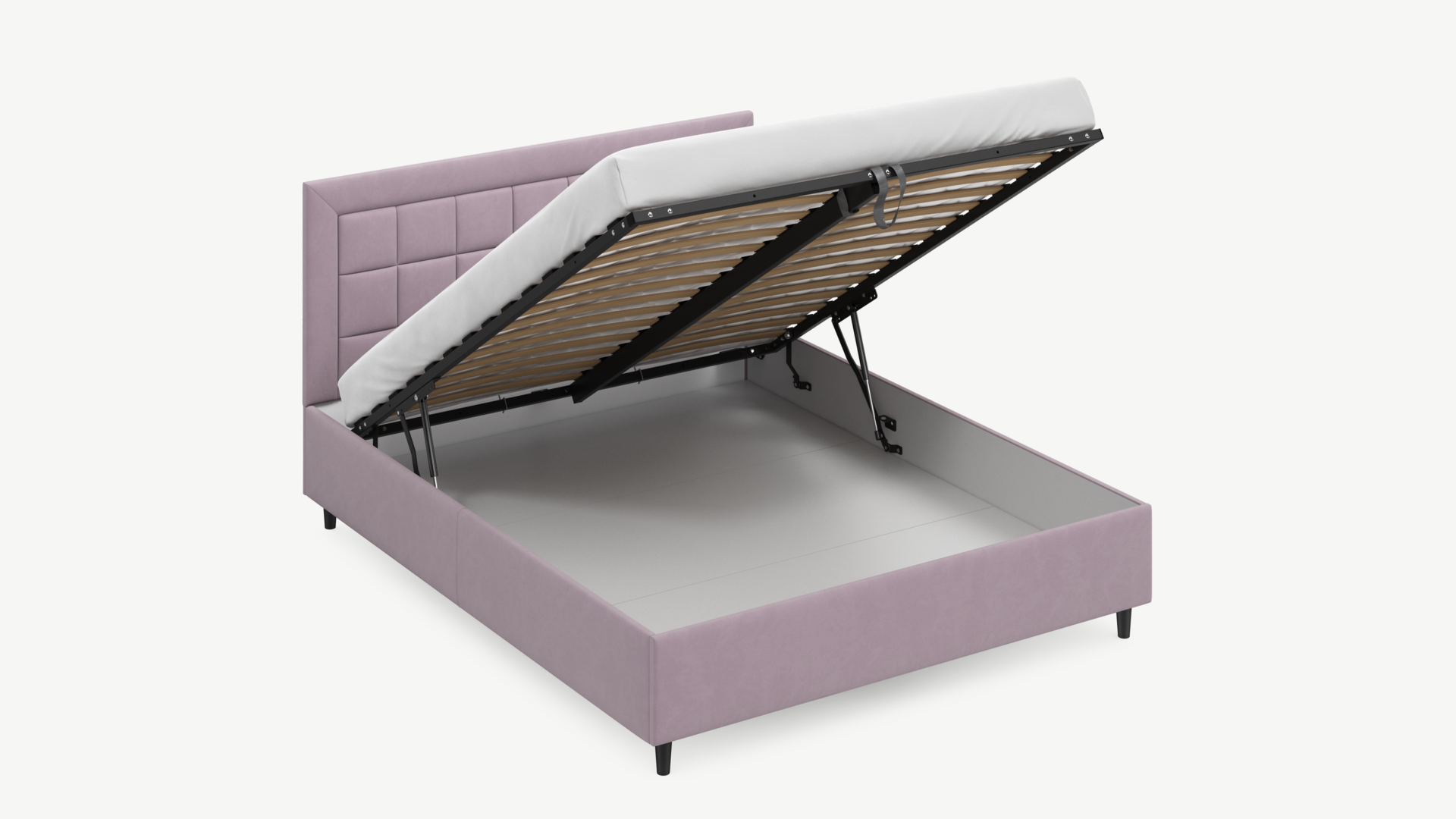 Регулируемый подъемный механизм с газовыми амортизаторами позволяет плавно и бесшумно поднимать и опускать спальное место.
