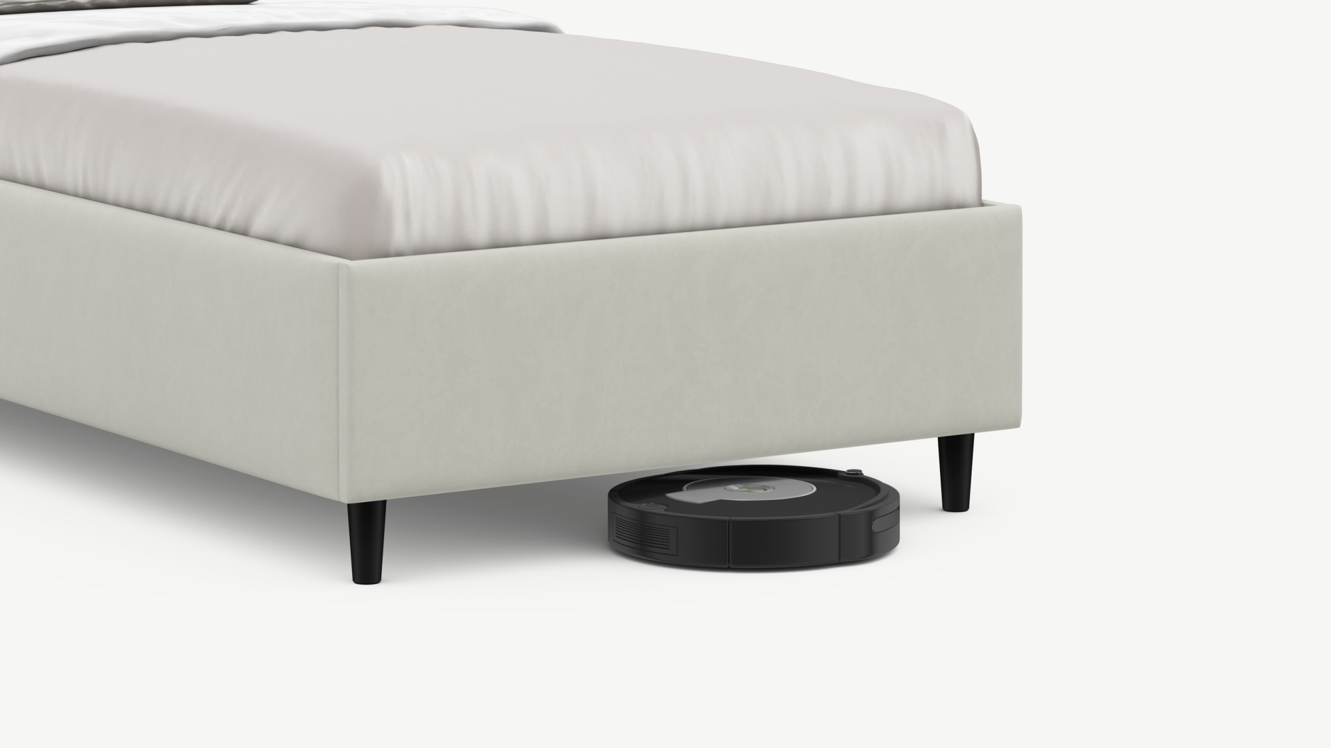 Благодаря высоким опорам под кроватью проходит робот-пылесос и легко проводится влажная уборка, что обеспечивает чистоту и порядок в доме.