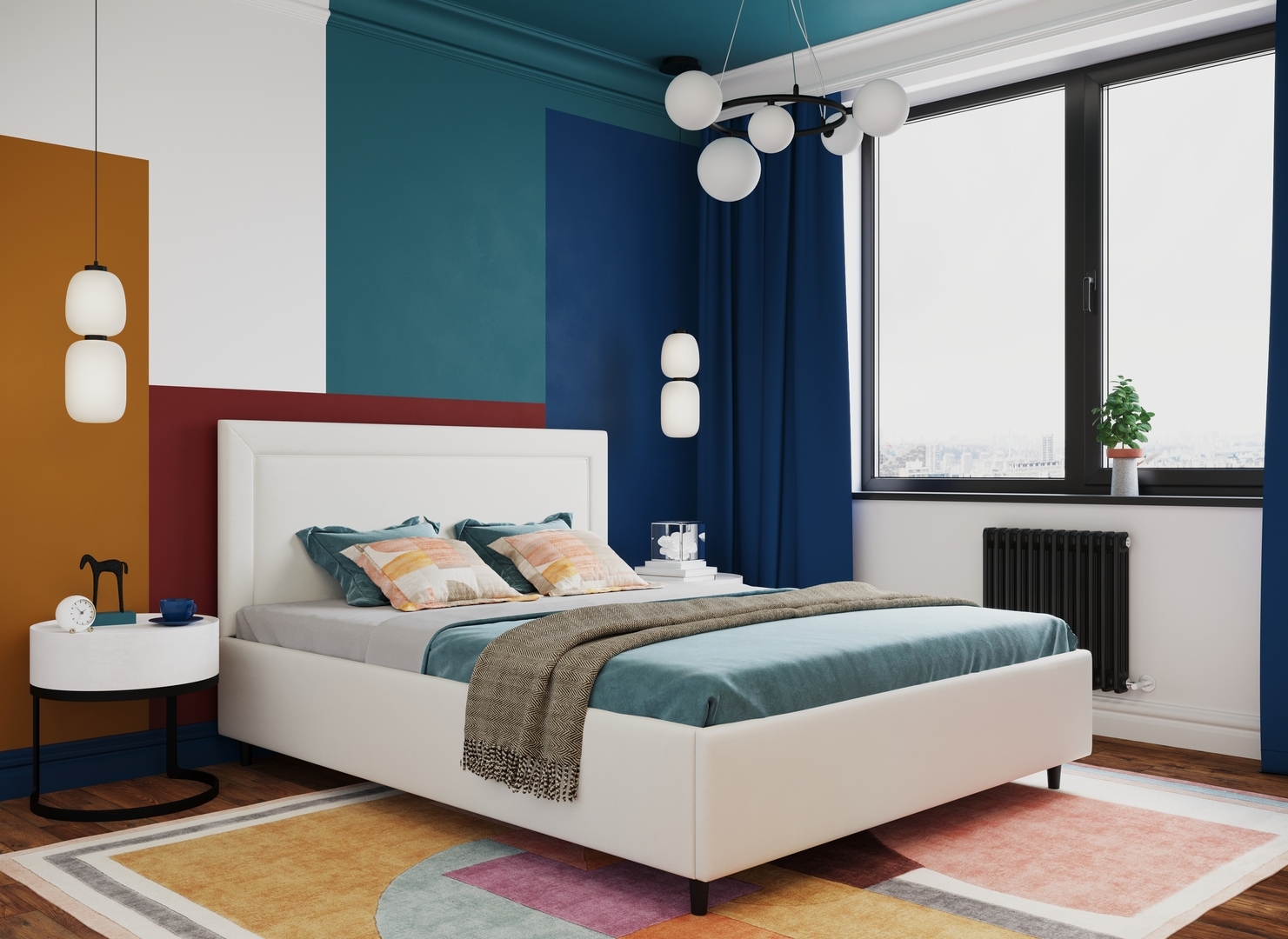 Создать гармоничный интерьер и завершить образ спальни помогут дополнительные аксессуары, например: тумбы, банкетки, подушки.