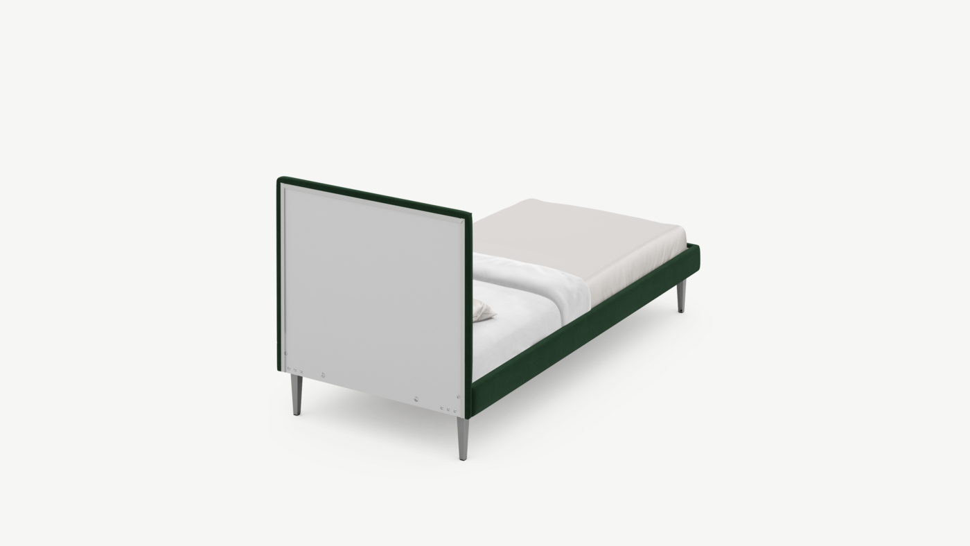 Кровать MOON FAMILY 1256 демонстрирует безупречный баланс изящных пропорций. Лаконичное изголовье, узкие царги и высокие опоры создают эффектный образ, привносящий в пространство спальни стильный и яркий акцент.