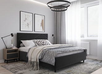 Фактура обивочного материала подбирается дизайнерами с учетом технологических и стилевых особенностей кровати.