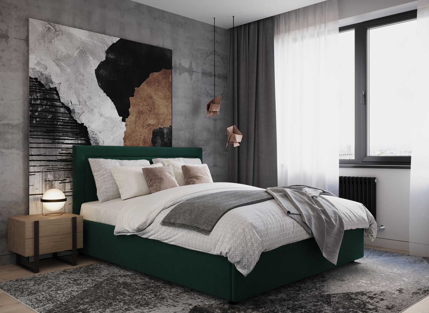 Создать гармоничный интерьер и завершить образ спальни помогут дополнительные аксессуары, например: тумбы, банкетки, подушки.