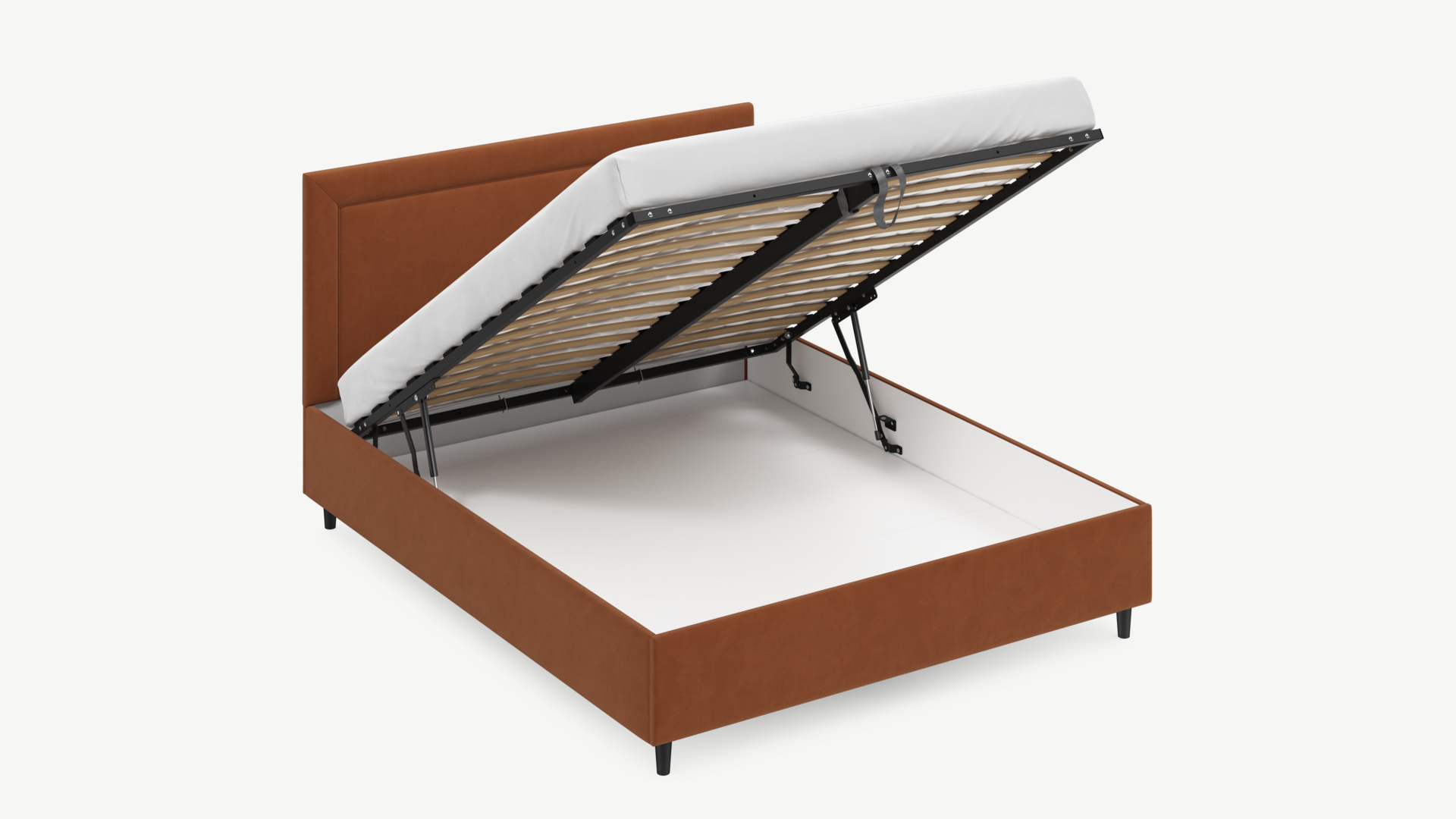 Регулируемый подъемный механизм с газовыми амортизаторами позволяет плавно и бесшумно поднимать и опускать спальное место.