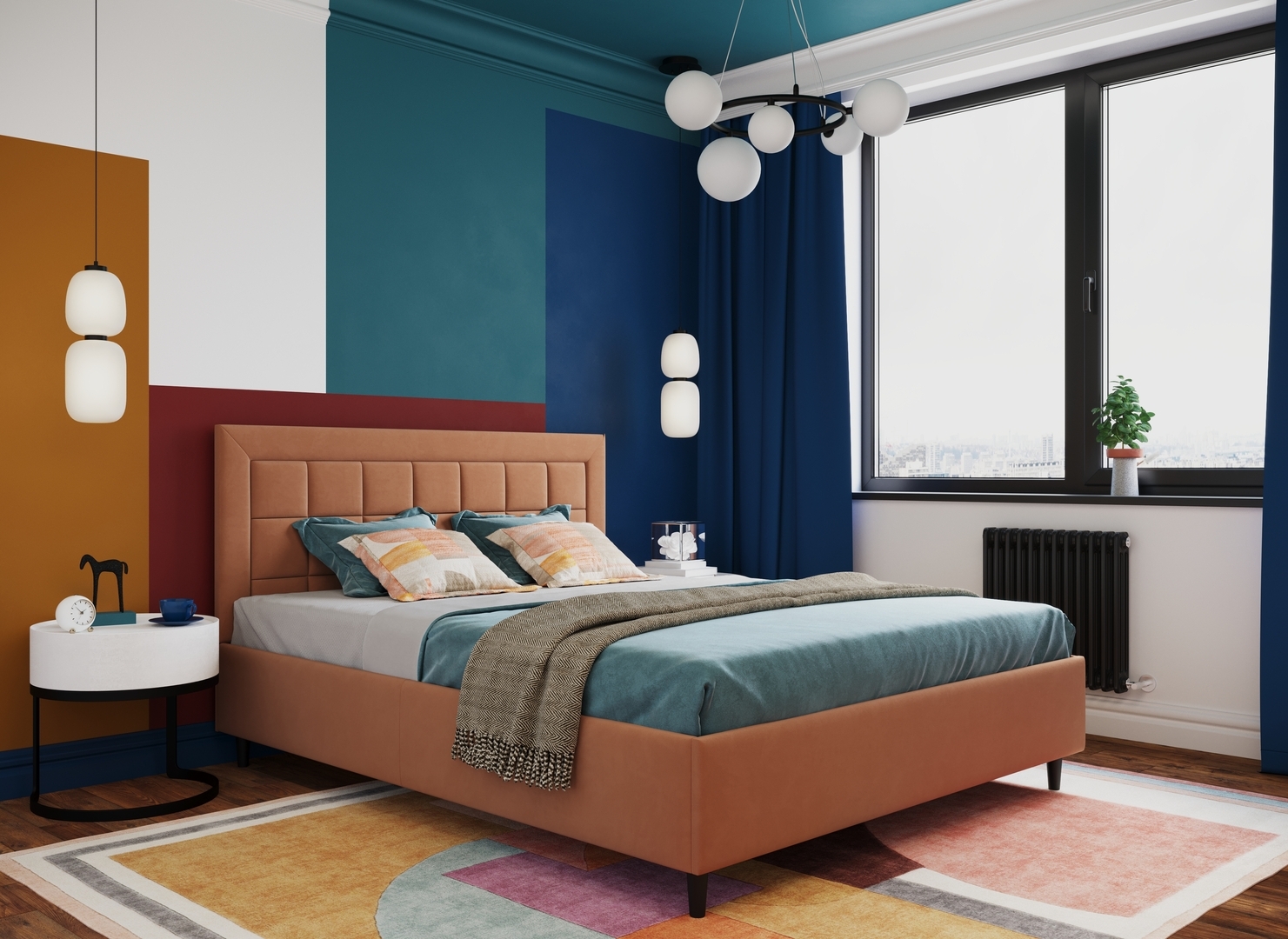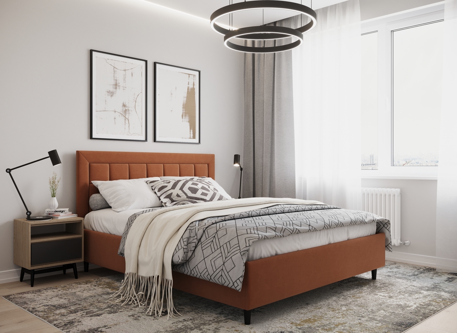 Создать гармоничный интерьер и завершить образ спальни помогут дополнительные аксессуары, например: тумбы, банкетки, подушки.