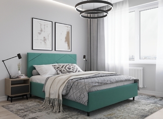 MOON FAMILY 1257 привлекает внимание оригинальным исполнением: широкие полосы ткани эффектно пересекают периметр изголовья, создавая на нем графический орнамент. Лаконичные формы объемных царг создают единый гармоничный образ и фокусируют внимание на центральном текстурном элементе кровати.