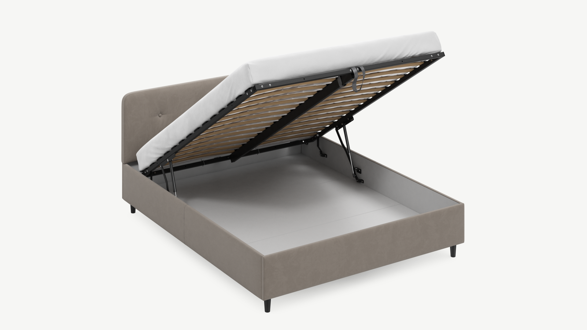 • Скрытая под основанием вместительная емкость без внутренних перегородок позволяет использовать всю площадь подкроватного пространства для хранения вещей.
