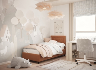 Фактура обивочного материала подбирается дизайнерами с учетом технологических и стилевых особенностей кровати.