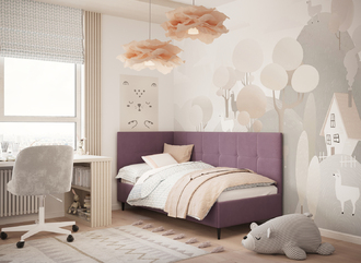 Кровать угловая с подъемным механизмомУгловая односпальная кровать MOON FAMILY 1261 с мягкой спинкой и изголовьем создаст в Вашей спальне ощущение уюта. Крупная квадратная стежка привносит в интерьер графических акцентов, а вставка из пуговиц наполняет пространство ощущением домашнего тепла.