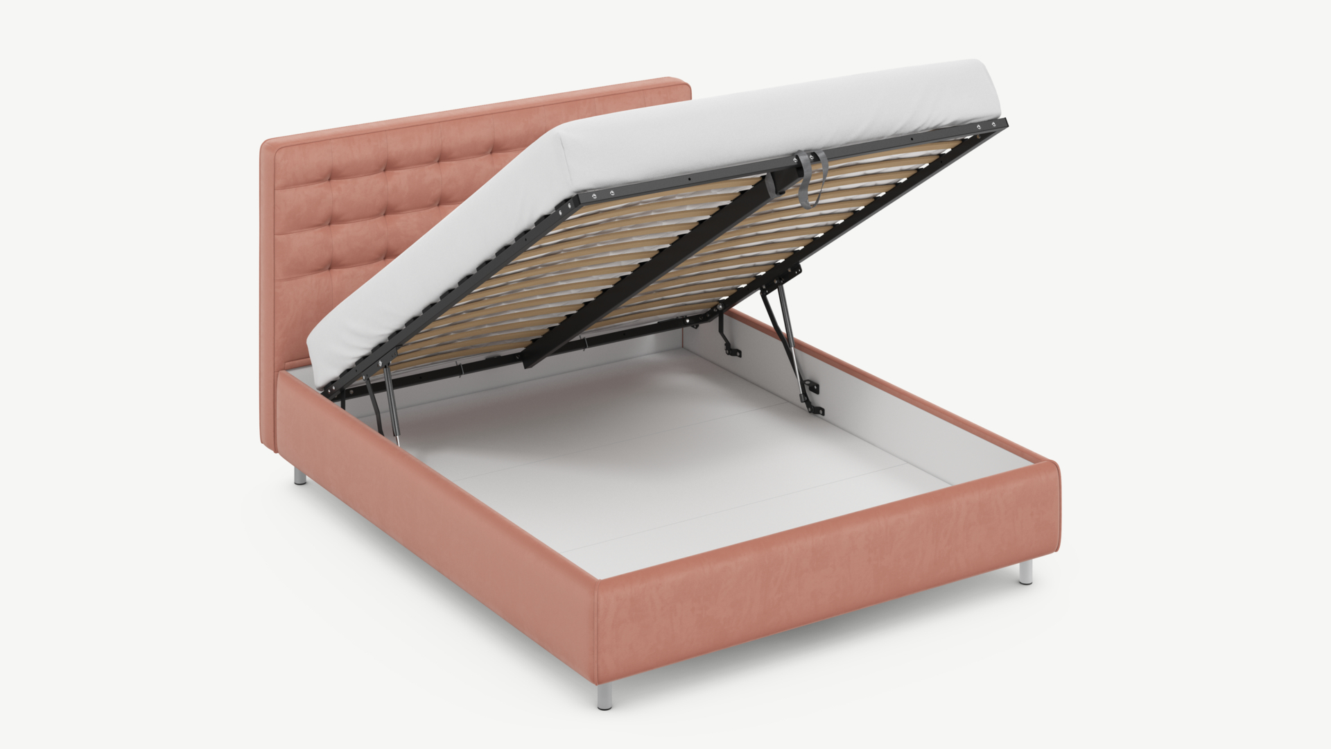 • Скрытая под основанием вместительная емкость без внутренних перегородок позволяет использовать всю площадь подкроватного пространства для хранения вещей.