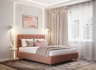 Оформите образ кровати, выбирая обивочный материал, который подчеркнет звучание Вашей спальни и отразит Ваш вкус. Обратите внимание на однотонный гладкий велюр, который усиливает объемную фактуру стежки.