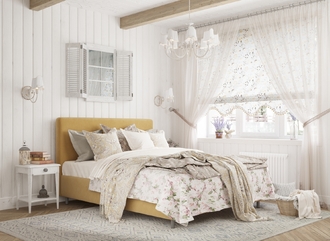 Творческий подход к выбору обивочного материала меняет образ дизайна. Велюр за счет своей бархатистой фактуры привносит в пространство шика и утонченности. Шенилл дополняет оформление спальни природными текстурами, создавая атмосферу тепла и уюта.