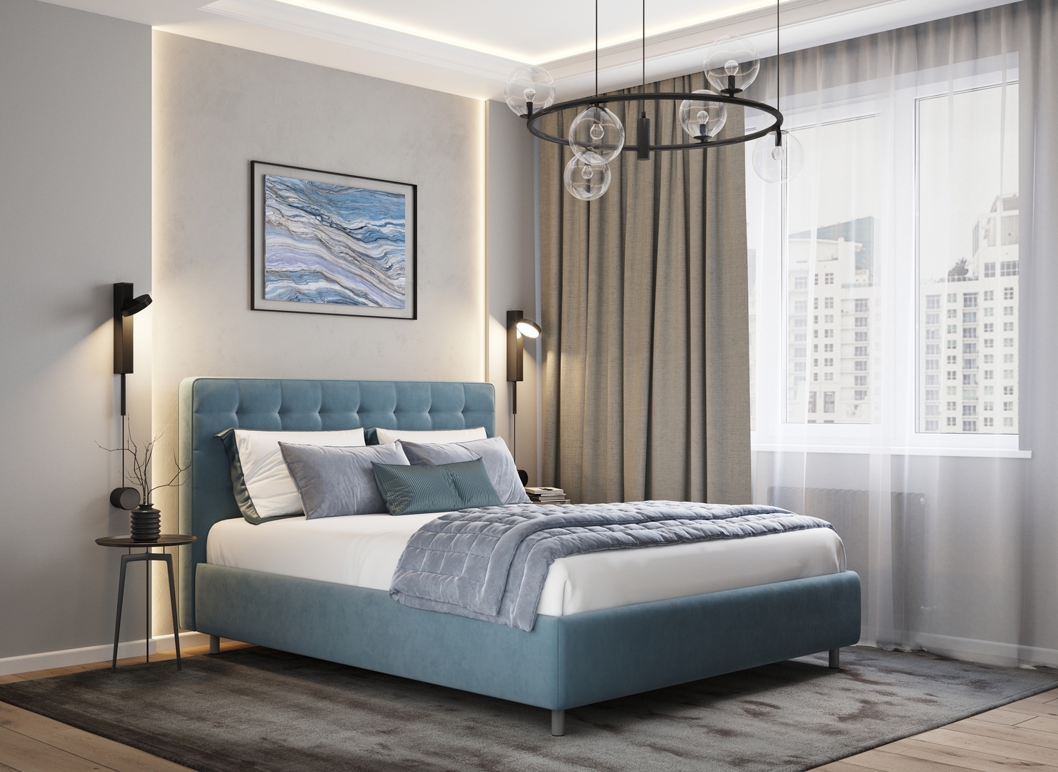 Оформите образ кровати, выбирая обивочный материал, который подчеркнет звучание Вашей спальни и отразит Ваш вкус. Обратите внимание на однотонный гладкий велюр, который усиливает объемную фактуру стежки.