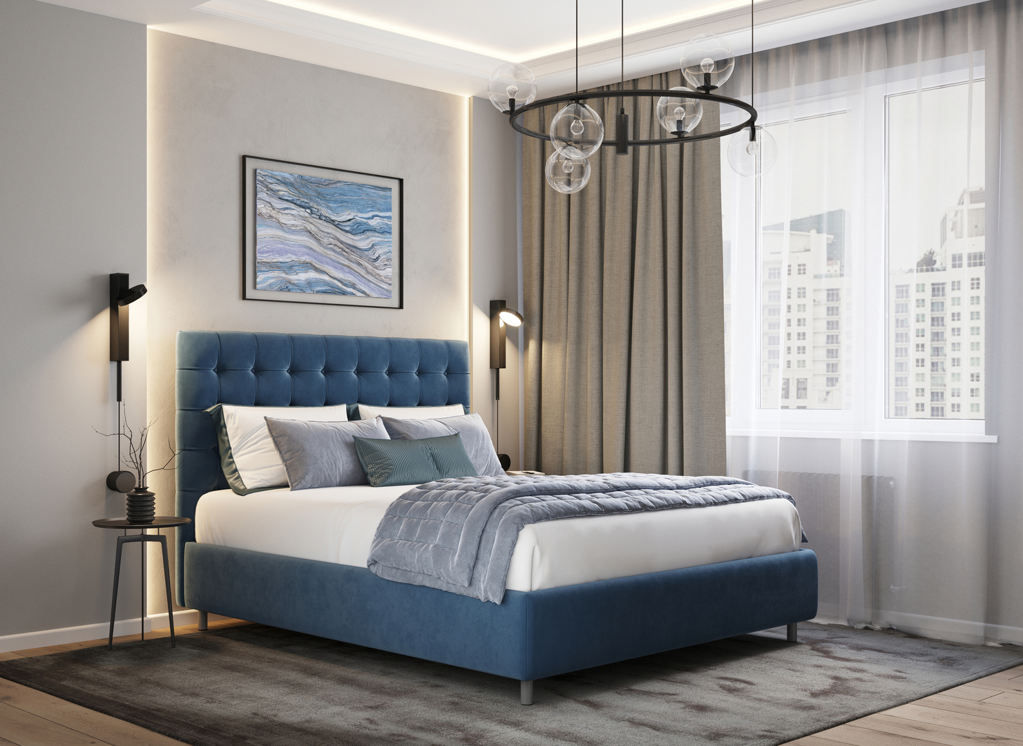 Творческий подход к выбору обивочного материала меняет образ дизайна. Например, однотонный гладкий велюр придает кровати эстетическую утонченность, в то время как фактурное тиснение на ткани усиливает игру перехода оттенков и выглядит особенно оригинально. Оформите образ кровати, выбирая обивку, которая подчеркнет звучание Вашей спальни и отразит Ваш вкус.