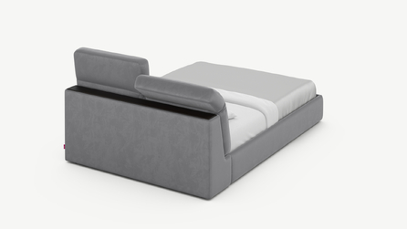 Изголовье подчеркивает эстетику MOON 1107, а также дарит дополнительный комфорт и уют спальному месту. Обратная сторона изголовья выполнена в мебельной ткани и позволяет ставить кровать в центре комнаты для зонирования пространства.