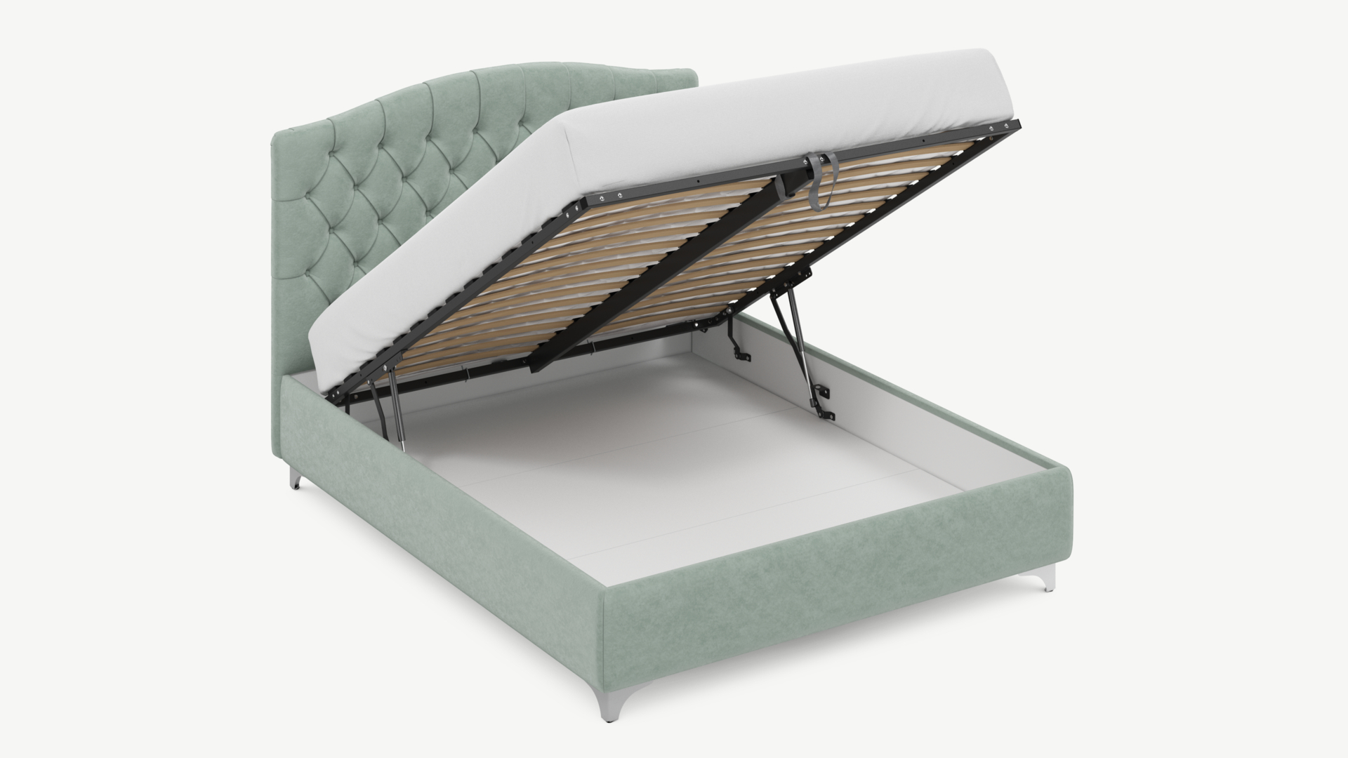 • Скрытая под основанием вместительная емкость без внутренних перегородок позволяет использовать всю площадь подкроватного пространства для хранения вещей.